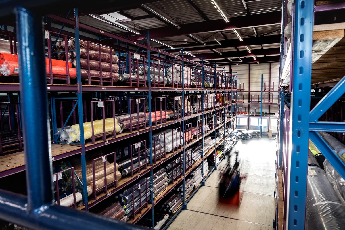 Order picking is carried out by forklift trucks via a high-bay warehouse. The workwear is packed and dispatched on up to 5 packing lines.